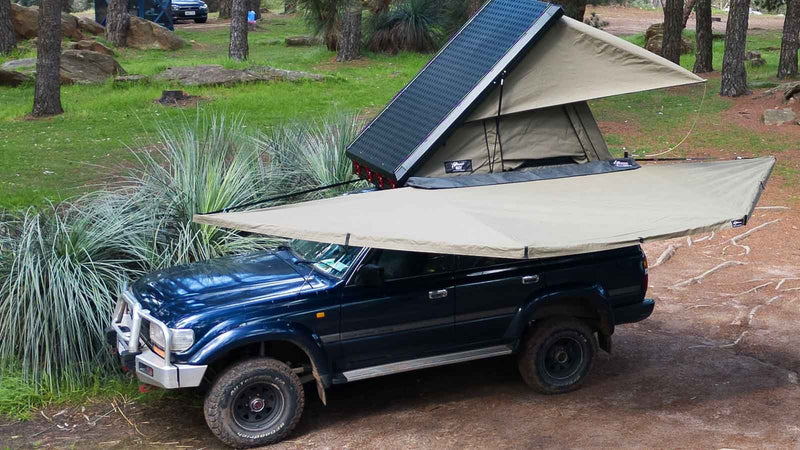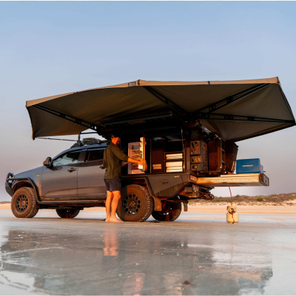 A freestanding awning is your ultimate shelter on the go. Other than attaching to your vehicle, the awning stands strong on its own, offering instant shade and protection wherever you need it. The strong stainless steel hinges and aluminium fusion frame form a robust structure that stands up to harsh conditions, whilst also being easy to use - you simply fold the arms out/in for a quick pack up or set up.