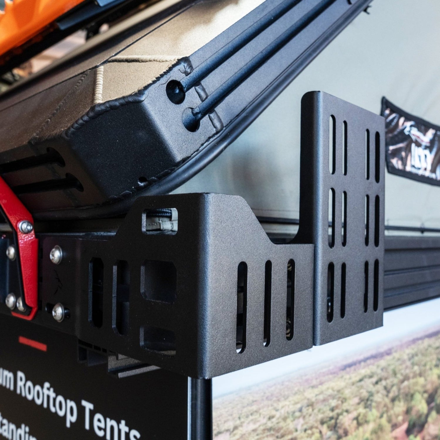 Designed exclusively for the LX27, these brackets mount directly to the tent’s pre-engineered channels with no need for drilling or modification. This tailored fit ensures alignment is always perfect and reduces wear on both the tent and awning during off-road use.
