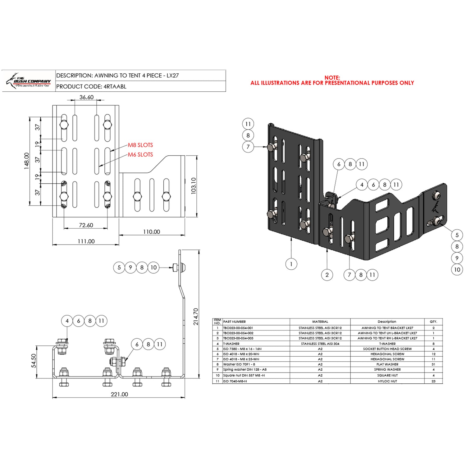 This bracket set is designed to work in harmony with The Bush Company’s full overlanding system. It supports not only awning attachment but also reinforces the modular philosophy behind the LX27 platform—offering ease, strength, and long-term reliability for serious 4WD adventurers.