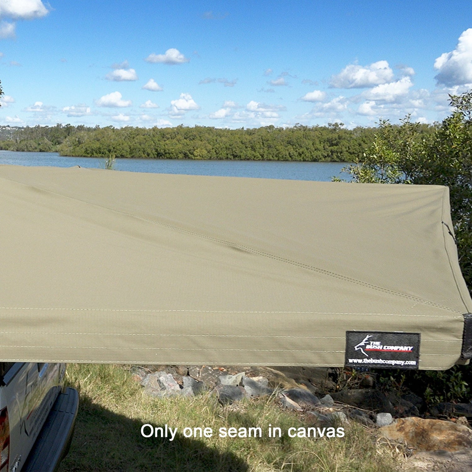 The awning canopy is made from 315gsm rip-stop poly-cotton canvas, pre-treated for water resistance, mould and mildew protection, and UV stability. A unique single-seam design eliminates unnecessary stitching across the canvas, significantly reducing potential leak points and increasing waterproofing efficiency.