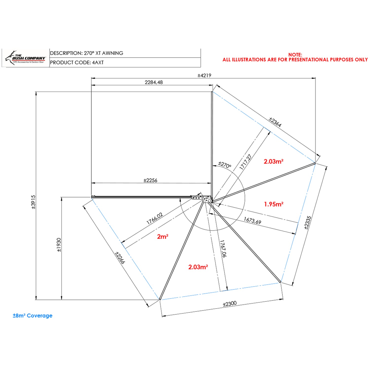 The 270 XT Awning Mk2 by The Bush Company is a high-performance freestanding 270-degree awning engineered for durability, rapid deployment, and full integration with touring setups. Designed for overlanders and 4WD travellers, this awning delivers advanced weather protection and convenience with unmatched structural strength.