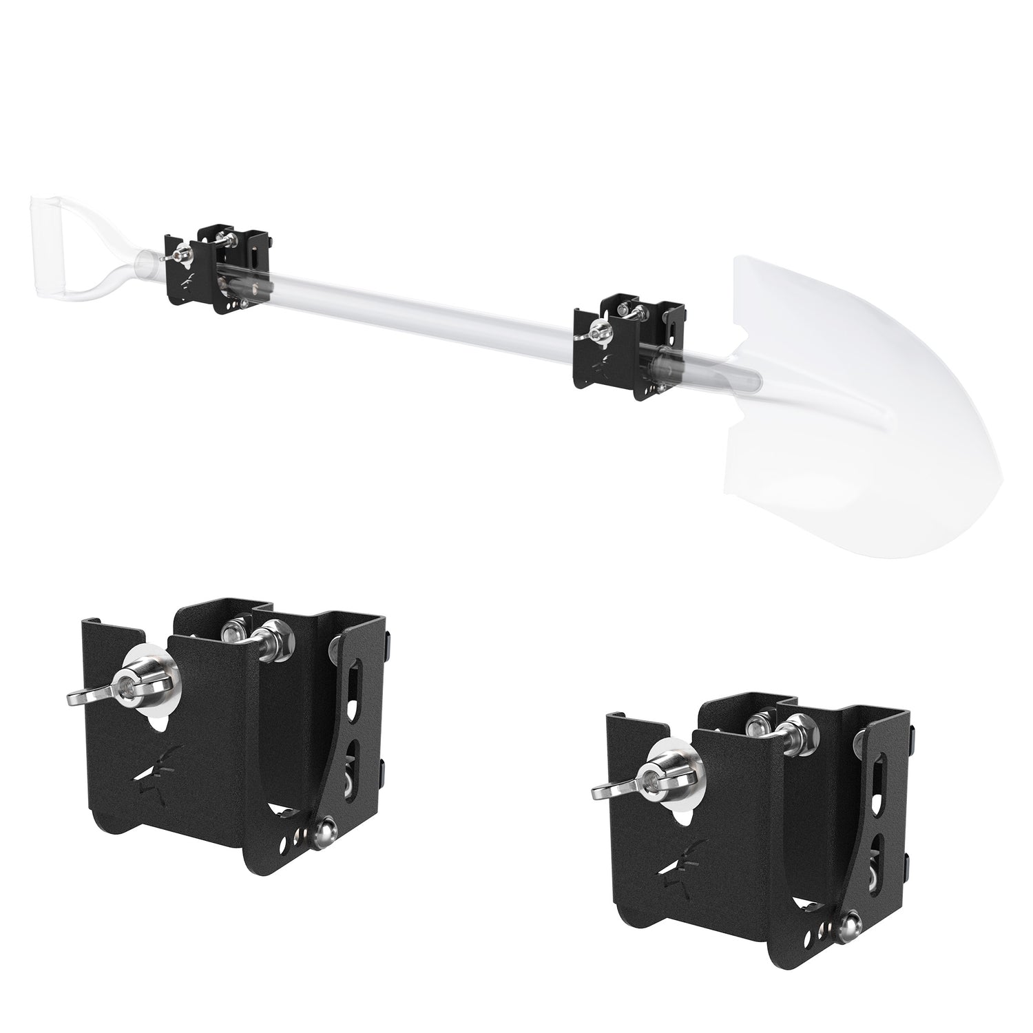 Installation is quick and requires only basic tools. Simply slide the bracket pair into the Ezi-Slot channels, align the clamping system to your shovel’s handle, and tighten using the included stainless fasteners. The entire setup process takes under five minutes—significantly reducing vehicle setup time and eliminating complex roof rack modifications.